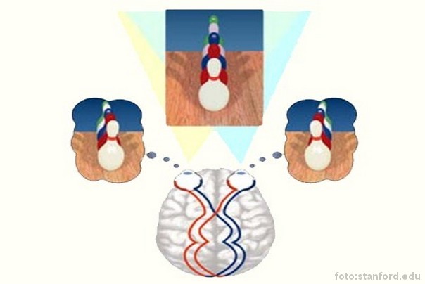 U ljudskom našem, mozgu se na osnovu informacija iz dva odvojena komplikovanim procesom sažimanja stvara jedinstvena slika koju čovek vidi . Čovek vidi trodimenzionalno to jest, ima trodimenzionalni vid! …