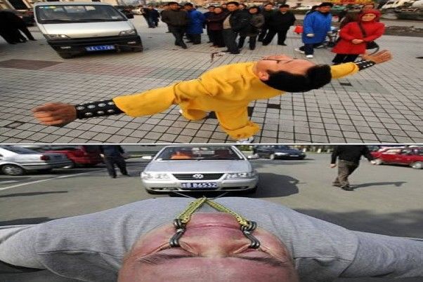 Kaskader kinez Ksi Zhongcai iz grada Hefei u istočne provinciji Anhui,ima takođde bizaran talenat.Ovaj kinez vuče automobile, i kombi vozila svojim kapcima.!