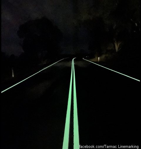 Tarmac Linemarking je nedavno dospeo na naslovnice vesti u australiji, jer su neki vodeći mediji objavili priču i probnu vožnju na putu sa fotoluminiscentnim oznaka linija na jednom kilometru dugom delu puta u ruralnoj Australiji.